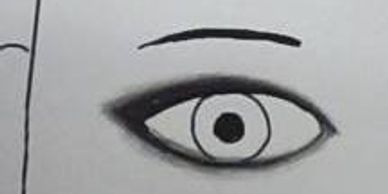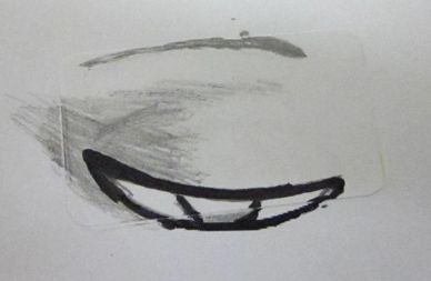 Next, I apply a dark eye shadow over the outside half of the eye lid, draw it out beyond the eye a little fading into a point not quite as far as the temple. I apply a little below the lower, outside third of the eye also ending at the same point near the temple. Finally, I apply a little from the temple point across the eye socket bone (just above the eye lid crease) and ending before reaching the bridge of the nose.
