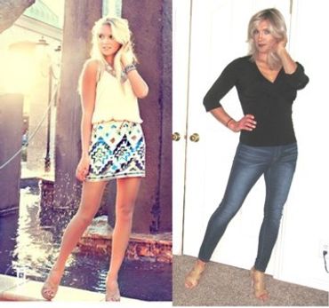 Most of the above applies to sitting poses as well but there are additional leg positions to keep in mind. Again facing directly forward is not the best. When crossing legs, have the leg nearest the camera cross over the other one. If you do it the opposite way, It will exaggerate the calf muscle of the top leg which is usually already bigger than most females’. Dangling the heel of your shoe off your foot a little is a nice touch. Another good sitting pose is with knees together but one foot tucked under or back. Are you smiling?