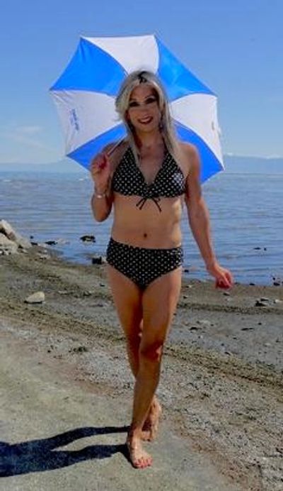 When I post pictures in a bathings suite is when I get the most inquiries. For those photos I do something a lot more technical to hold things tighter and be less conspicuous. First I shave as much hair as possible. Then I take about 24 inches of package tape (no pun intended) and, starting just below my belly button, I wrap it as tightly as possible straight down and then back up the back side and ending on my lower back. I do this 4 or 5 more times with each successive length of tape off center a little more and crossing in an X shape at the bottom being sure to encompass any flesh to the left and right that the first strip didn’t cover. To keep the ends on the lower back attached better I apply a 12 inch length of tape horizontally just below the belt line. The results look like a clear plastic panty that is open on the sides and stuck to your body. The package tape is flexible but does not stretch so it holds things very well. I’ve used duct tape before and it sticks better but leaves residue on the skin and is more visible because it is not clear. There are some medical grade tapes that stick well and are skin colored but they are a little harder to find. The package tape will lose its grip after an hour or so but you can keep it in place longer by completing the horizontal pieces all the way around the waist just below the belt line. What I usually do next is put on the panties or bikini bottoms and trim away any tape that sticks out the edges. Removing the tape isn’t as difficult as you might think. It comes off the skin pretty easily but can be a little harder to remove if you didn’t trim the longer hairs beforehand